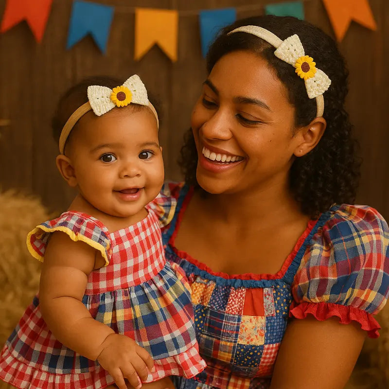 Ideal para sesiones de fotos, fiestas escolares, presentaciones o festivales familiares , esta tiara está diseñada para madres e hijas que quieran celebrar São João con mucho amor y estilo.