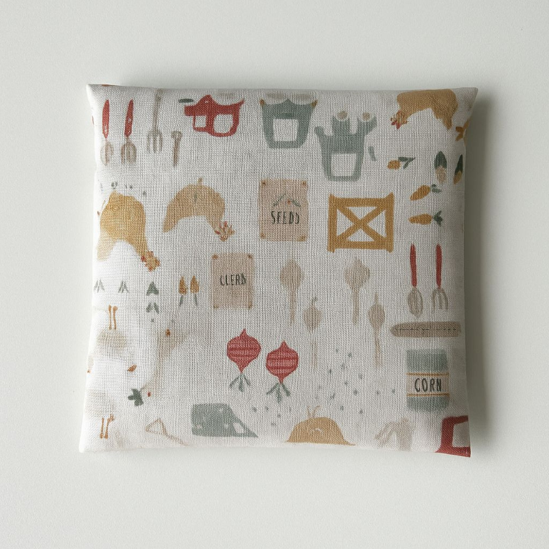almofada térmica bebê, almofada anti cólicas bebê, almofada fazendinha bebê, acessório conforto bebê, almofada de sementes bebê