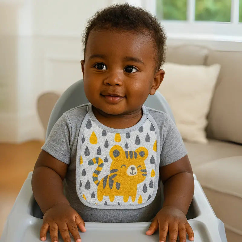 O Babador Supersec Felpudo Algodão Gatinho é feito em algodão felpudo macio e altamente absorvente, ajudando a manter o bebê sempre sequinho durante as refeições e no dia a dia.
