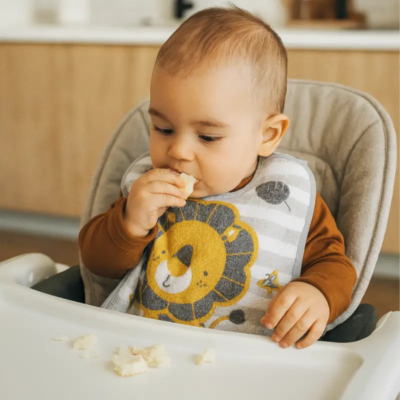 Com estampa divertida de leão transforma a hora da papinha em um momento mais alegre e lúdico.