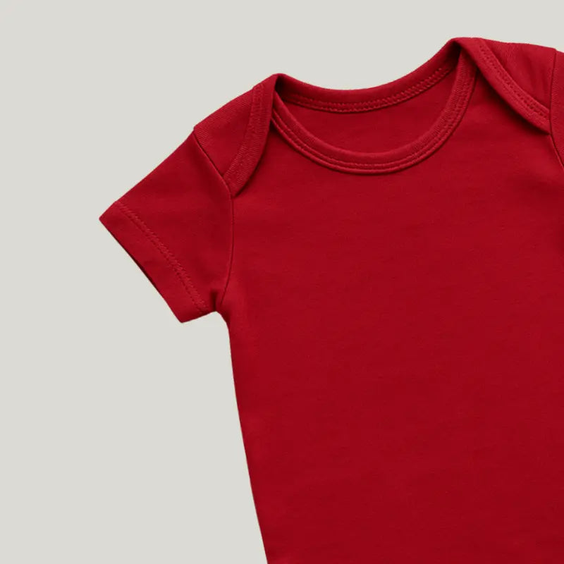 body bebê vermelho, body algodão orgânico, roupa bebê manga curta verão, body sustentável para bebê, look fresquinho e natural bebê