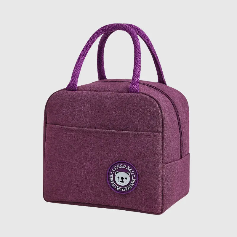 A Bolsa Térmica Lanche e Frutas Roxa é confeccionada em material resistente, com isolamento térmico interno que mantém lanches, frutas e pequenas refeições frescas por mais tempo.