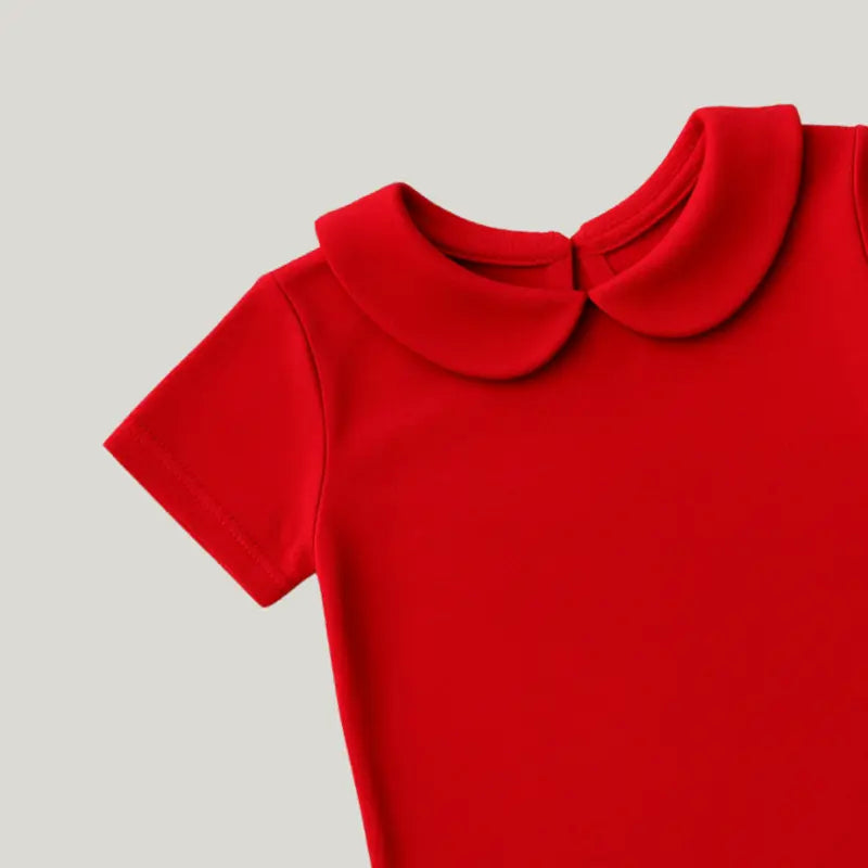 camisa gola redonda bebê, camisa vermelha infantil, roupa elegante para bebê menina ou menino, peça clássica para festas e ensaios, camisa com gola delicada bebê