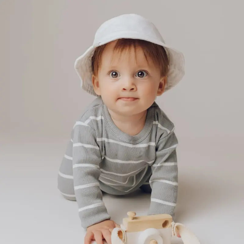 chapéu de sol bebê, chapéu bucket off white, acessório proteção solar bebê, chapéu verão infantil, chapéu unissex bebê