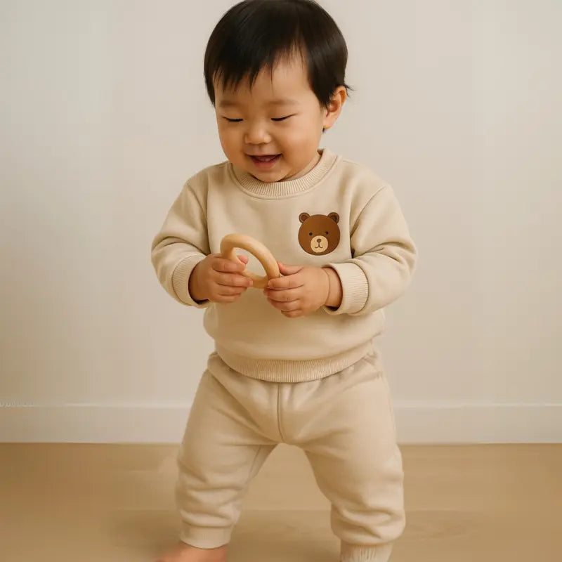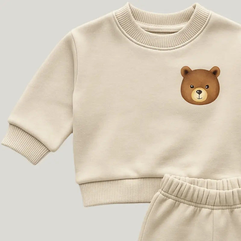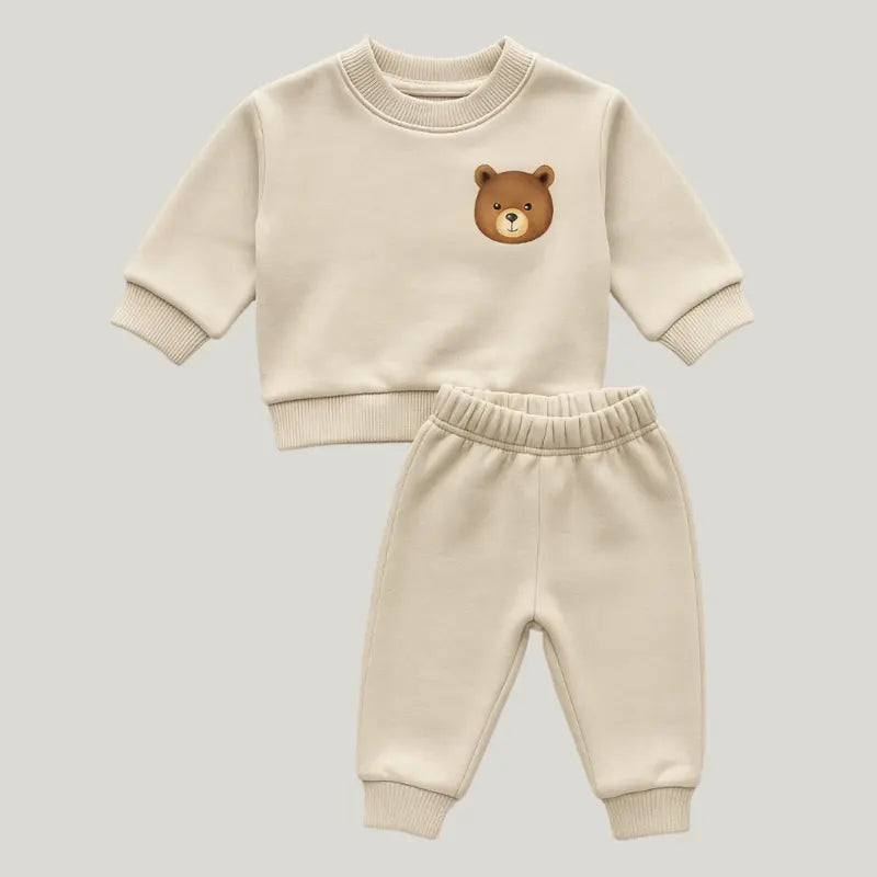 Conjunto Bebê Moletom Peluciado Comfy Bear Bege