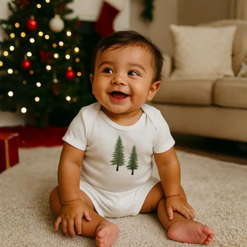 conjunto bebê inverno, conjunto bebê estampado, conjunto off white bebê, roupa bebê pinheiros, conjunto infantil confortável