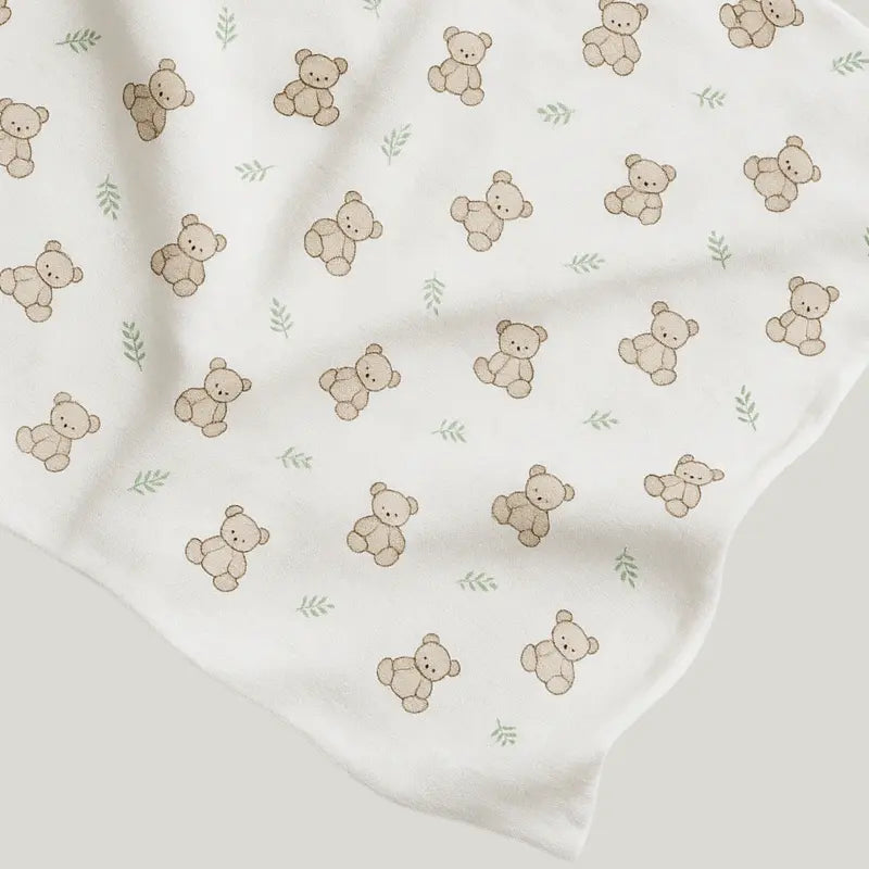 Seu design com estampa exclusiva Bear Florest alia delicadeza e estilo, ideal para envolver o recém-nascido com suavidade, facilitando o sono e o aconchego.