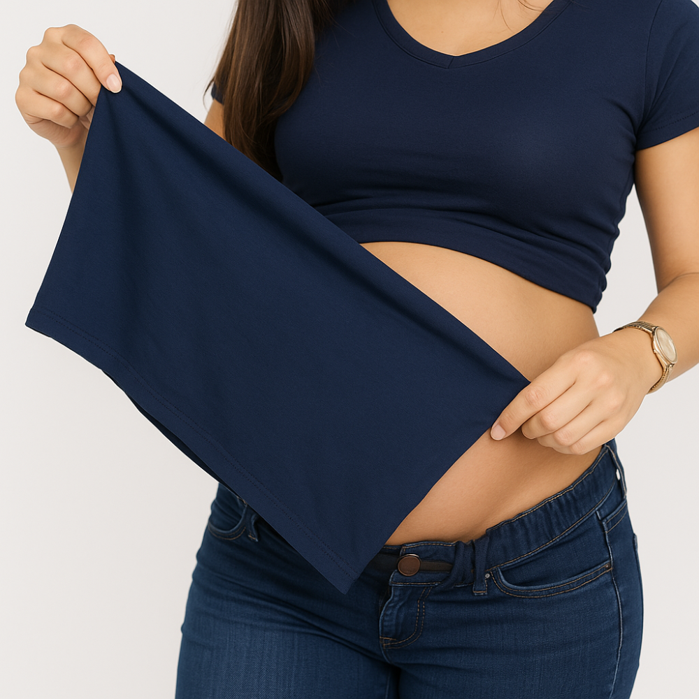 A Faixa Extensor de Calça Gestante Azul Marinho é a solução prática e confortável para continuar usando suas calças favoritas durante a gravidez. Com tecido flexível e elástico, ela acompanha o crescimento da barriga sem apertar, proporcionando liberdade de movimento e suporte extra na região abdominal.