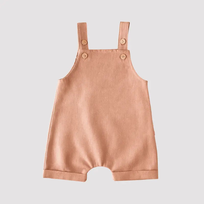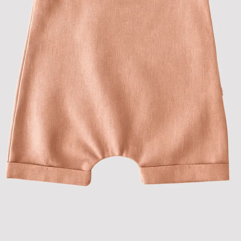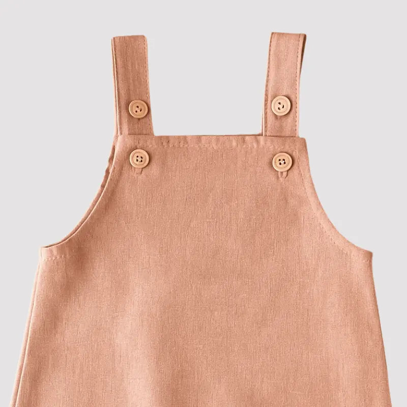 A Jardineira Bebê Leif Linho Salmão é confeccionada em tecido leve e respirável, garantindo conforto e liberdade de movimentos para o bebê em qualquer estação.
