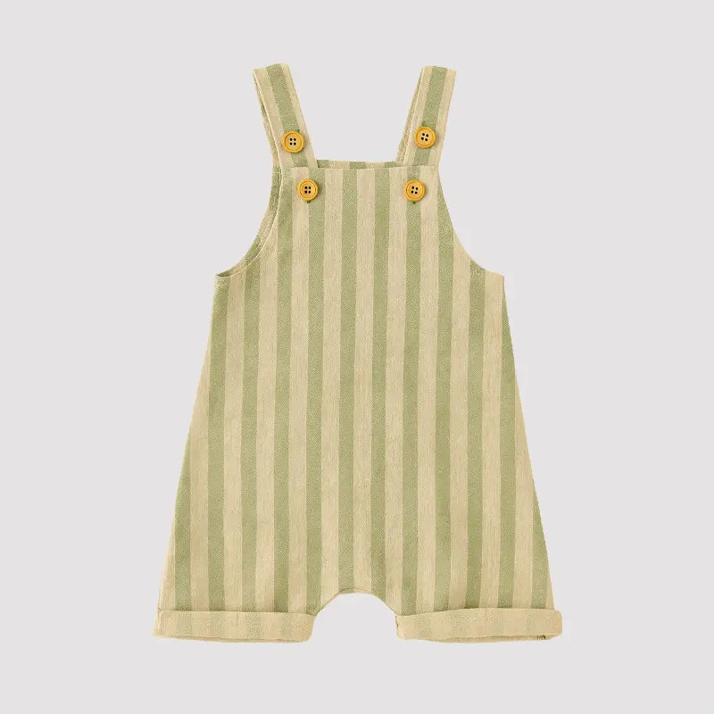 A Jardineira Bebê Linho Beach Green é confeccionada em tecido de linho misto, macio e respirável, garantindo conforto, frescor e liberdade de movimento nos dias de calor.