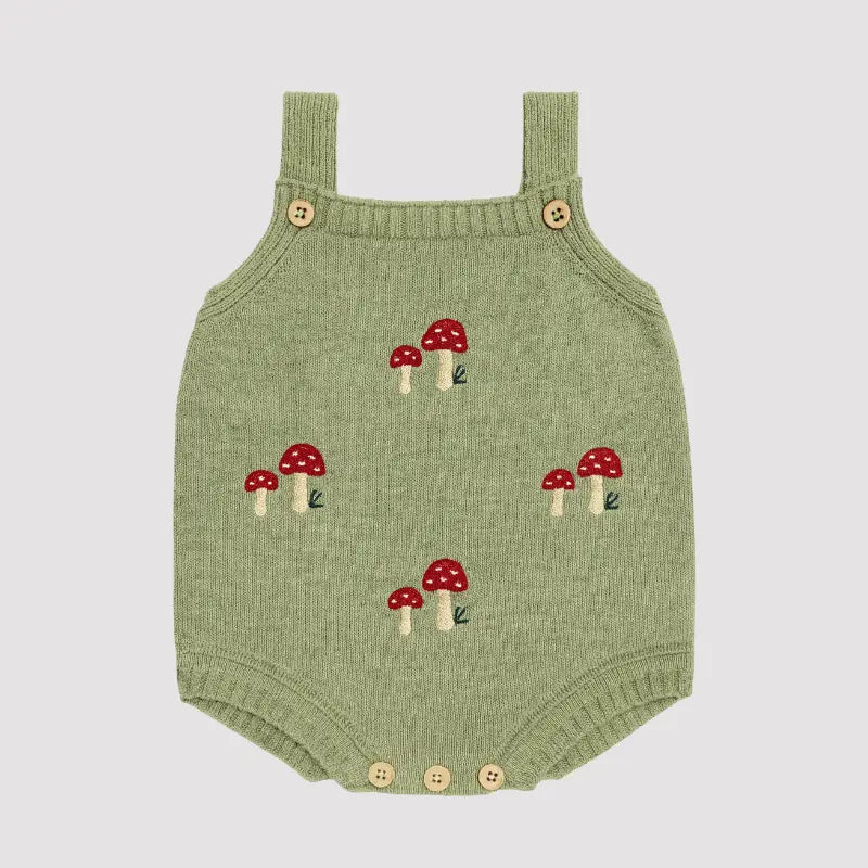A Jardineira Bebê Tricot Cogumelos Green é perfeita para quem deseja um look original, confortável e cheio de personalidade. Feita em tricot leve e macio, ela oferece toque suave, liberdade de movimento e um visual encantador, com aplicação de cogumelos que remetem a um universo lúdico e natural.