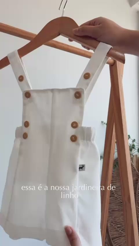 A Jardineira Infantil Bebê Unissex Linho Off White é perfeita para compor looks elegantes e atemporais em qualquer estação. Feita em tecido de linho misto com toque macio e confortável , proporciona conforto térmico e liberdade de movimento — ideal para graças especiais como batizados, aniversários, casamentos, ensaios fotográficos ou até mesmo para uma saída de maternidade diferenciada .