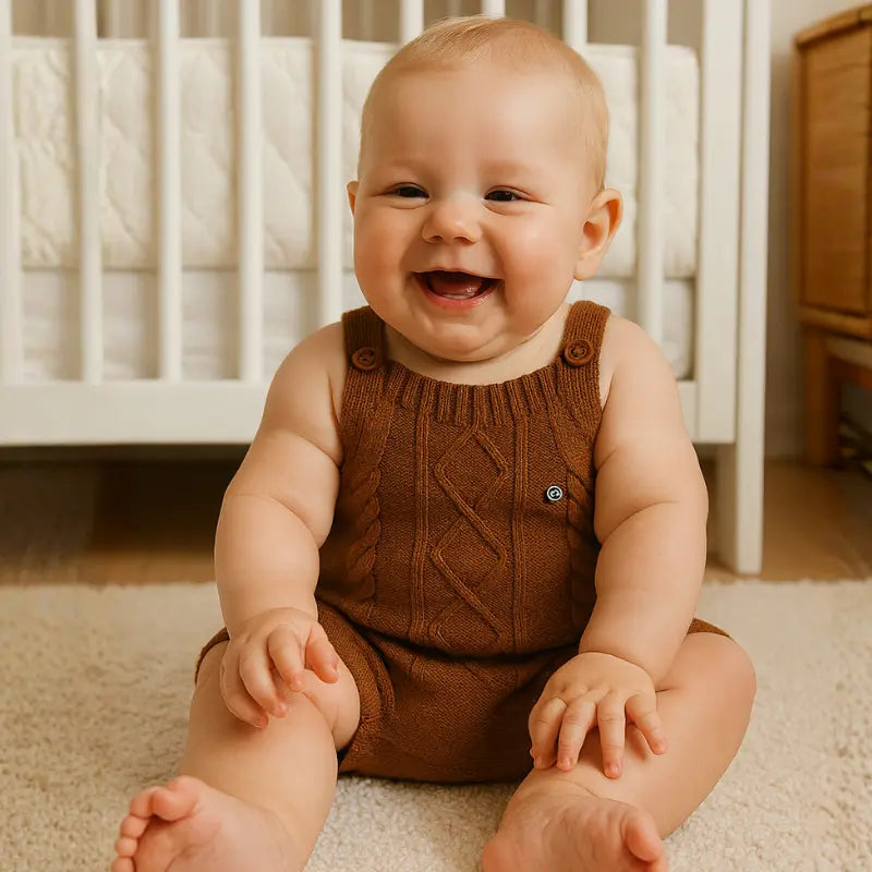 A Jardineira Tricot Bebê Confort Brown é confeccionada em tricot leve e respirável, proporcionando conforto e liberdade de movimentos em todas as estações.