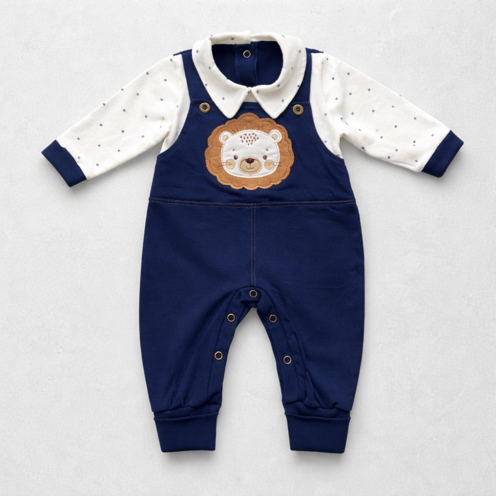 O bordado de leão traz um detalhe especial e lúdico, deixando o conjunto ainda mais encantador e perfeito para esse momento tão único.