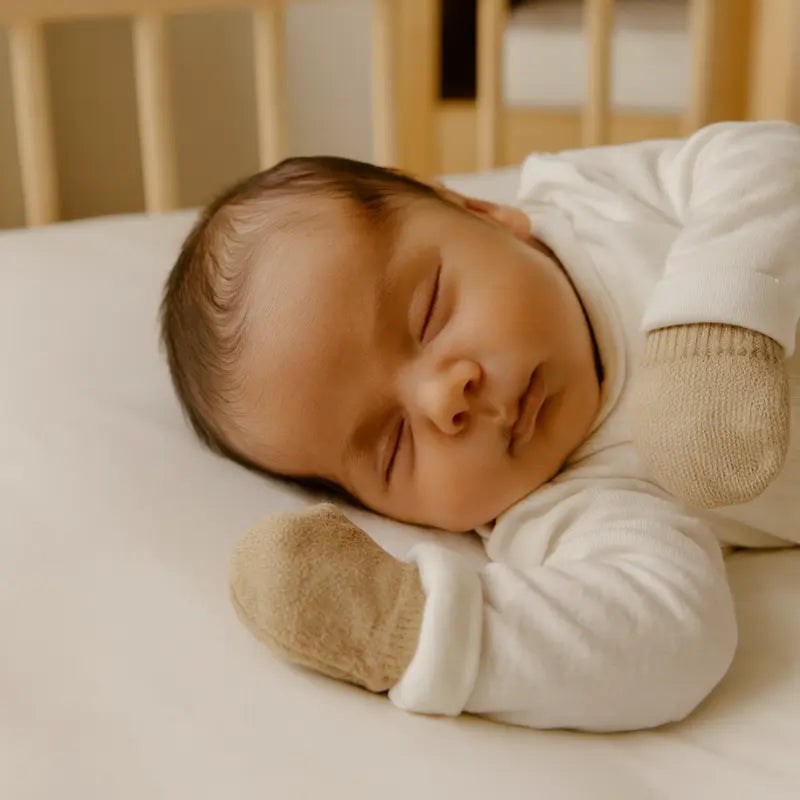 A Luva Bebê Confort Nude é confeccionada em tecido macio e leve, ideal para manter as mãos do bebê aquecidas e protegidas, evitando arranhões no rosto nos primeiros meses.