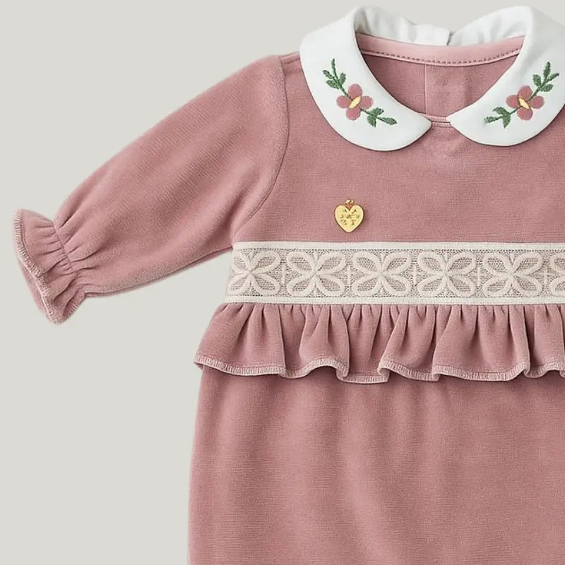 O Macacão Ameliê Flower Rose é confeccionado em tecido macio e confortável, garantindo aconchego para a pele sensível do bebê.