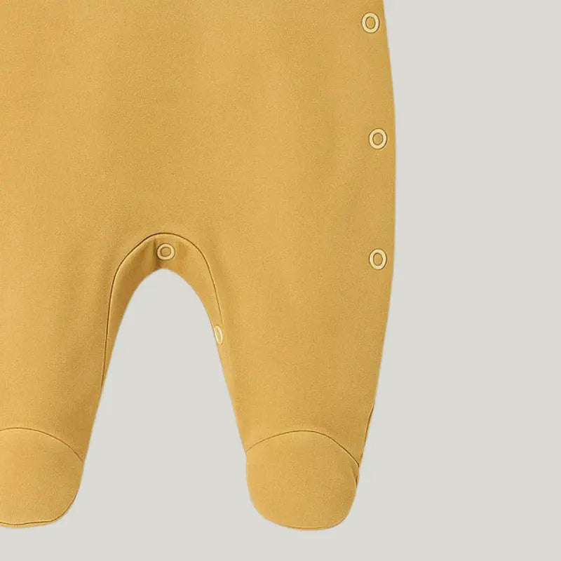 O Macacão Amor da Mamãe Yellow é confeccionado em tecido macio e confortável, garantindo bem-estar e liberdade de movimentos para o bebê.