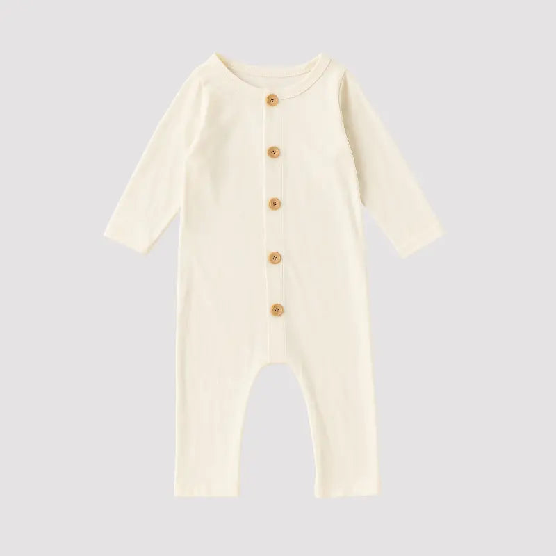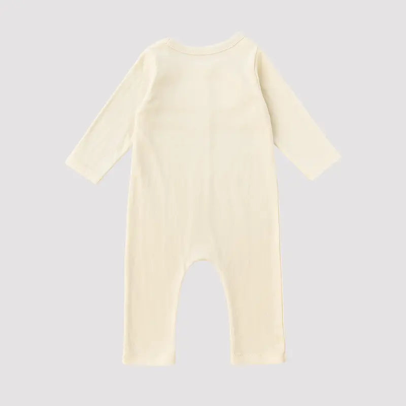macacão bebê algodão, macacão off white bebê, roupa confortável bebê, macacão unissex bebê, macacão básico elegante