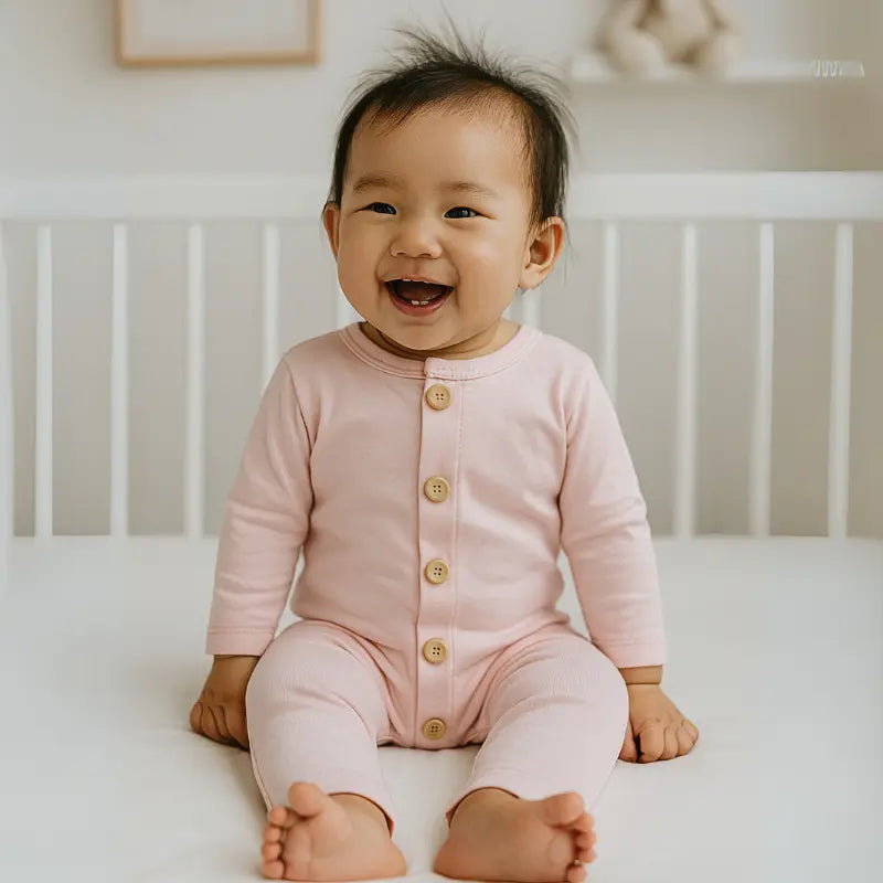 macacão bebê, macacão rosa algodão, macacão confortável bebê, macacão com botões bebê menina, roupa leve bebê, macacão algodão rosa bebê