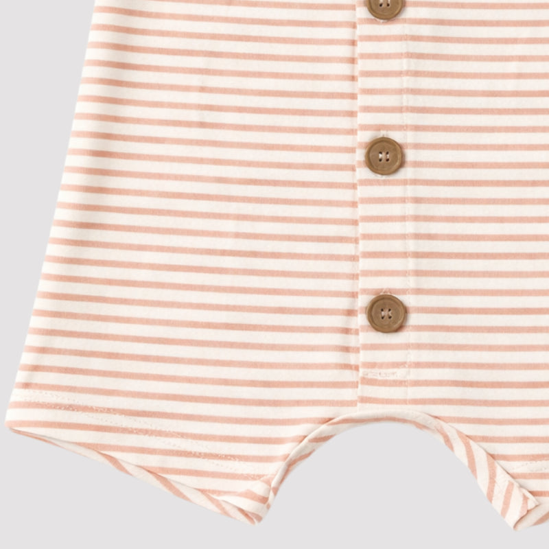 Com estampa de listras finas em tom rose suave, ele traz um visual delicado, moderno e atemporal — perfeito para o dia a dia do bebê.