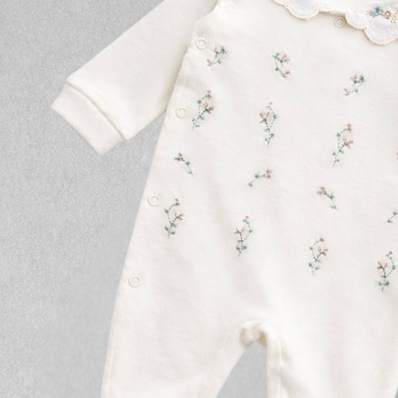 O Macacão Recém-Nascido Florence Off White foi criado para envolver a bebê com suavidade e elegância desde os primeiros dias de vida. Com um design delicado e detalhes florais bordados, a peça traz um toque clássico e encantador ao look do bebê.