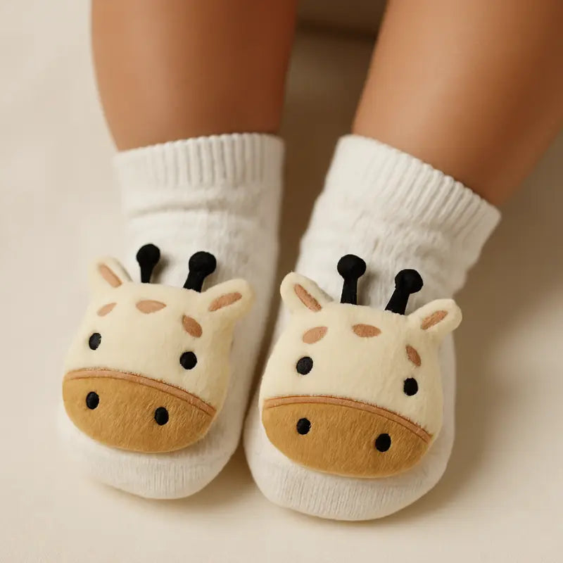 meia bebê antiderrapante, meia sensorial bebê, meia girafinha bebê, meia divertida infantil, meia confortável bebê