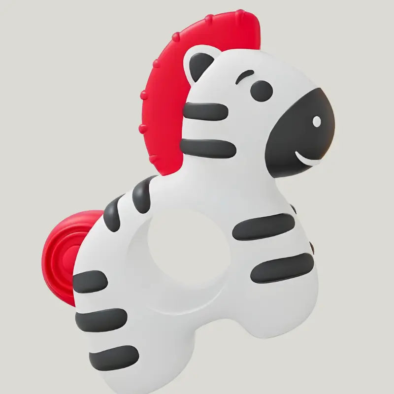Seu design divertido em formato de zebrinha desperta a curiosidade e entretém, enquanto ajuda a reduzir o incômodo gengival típico da fase da dentição.