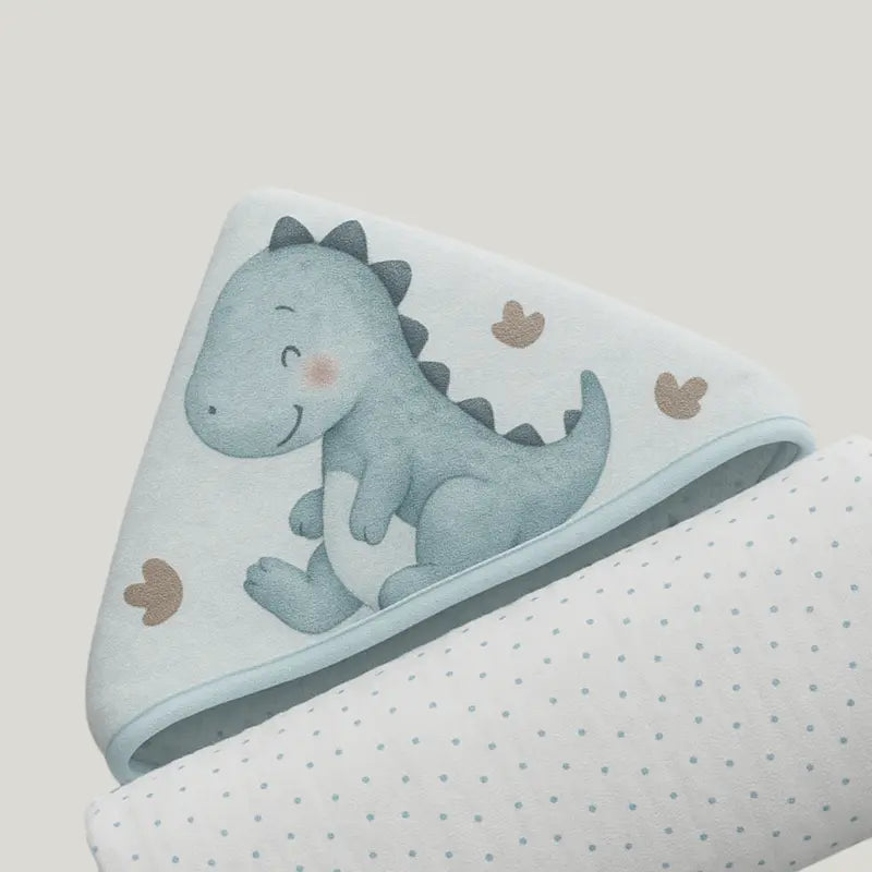 A estampa de Dino é uma opção charmosa e divertida, que adiciona um toque de alegria ao momento do banho.