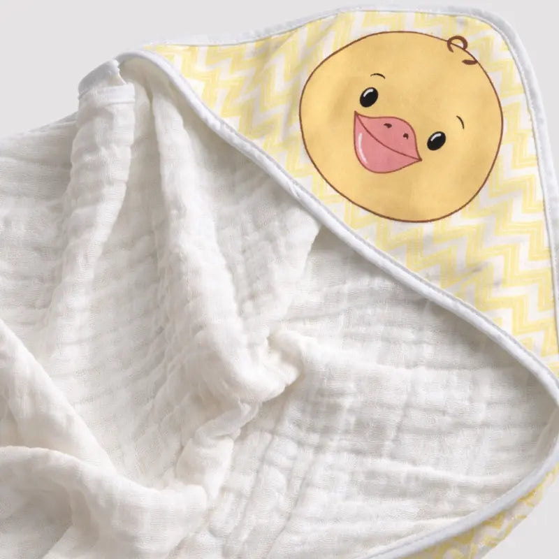 Com capuz estampado com rostinho delicado de patinho , ela envolve o bebê com precauções e proteção logo após o banho, mantendo a cabecinha aquecida.