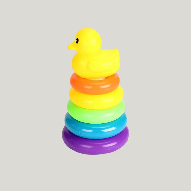 torre de argolas bebê, brinquedo sensorial bebê, torre patinho educativo, brinquedo educativo bebê, argolas coloridas bebê, brinquedo montessoriano bebê