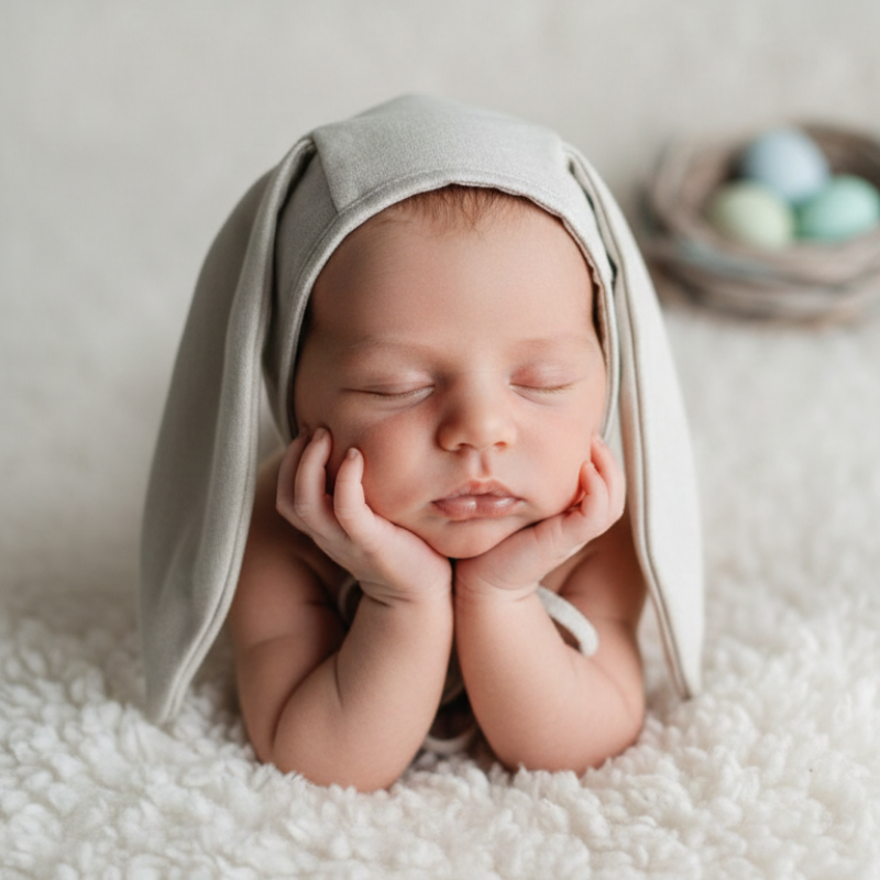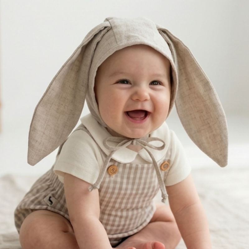 Com tom cru natural e detalhe de orelhinhas de coelho , ela traz um visual lúdico, suave e extremamente fotogênico — perfeita para momentos especiais.