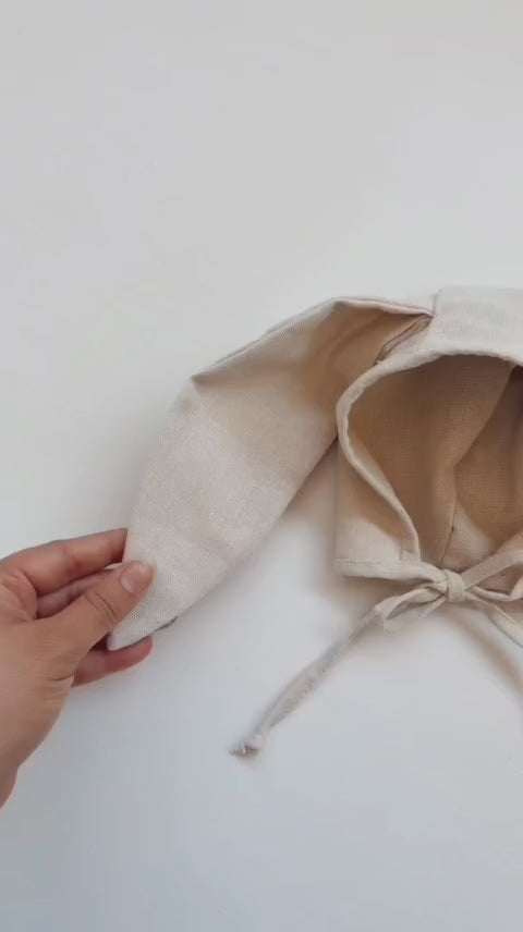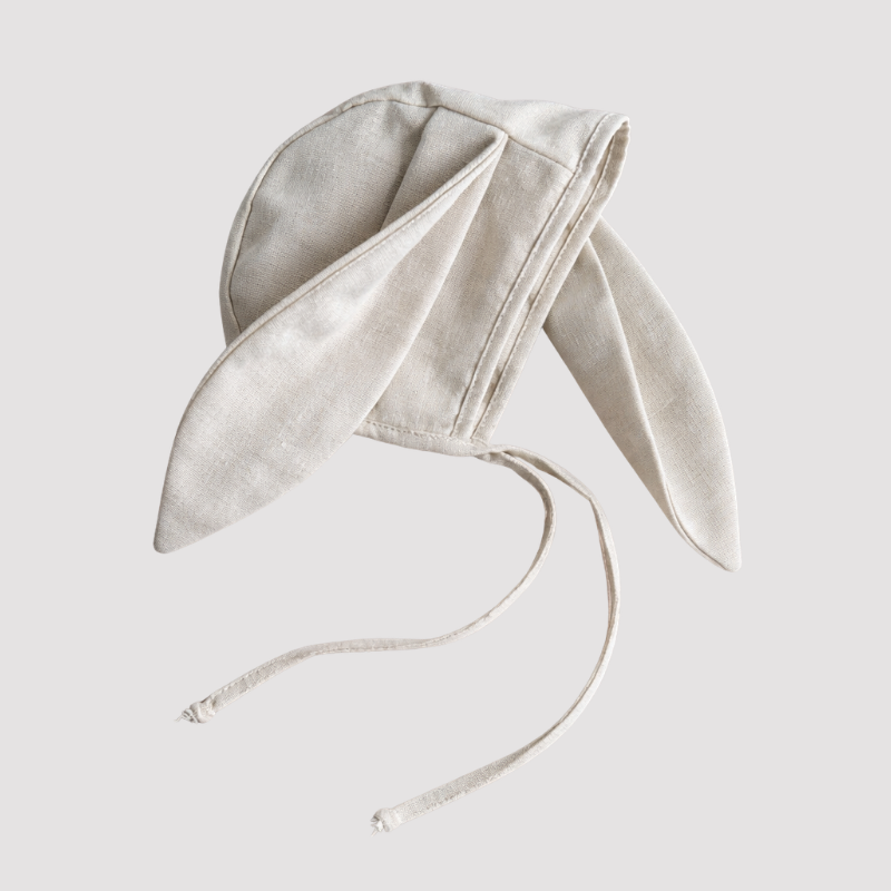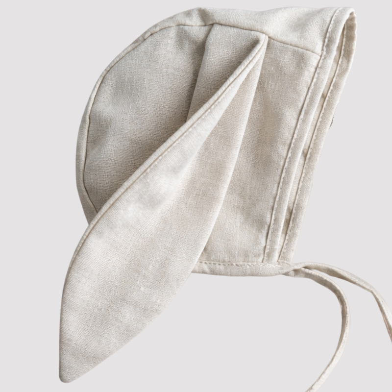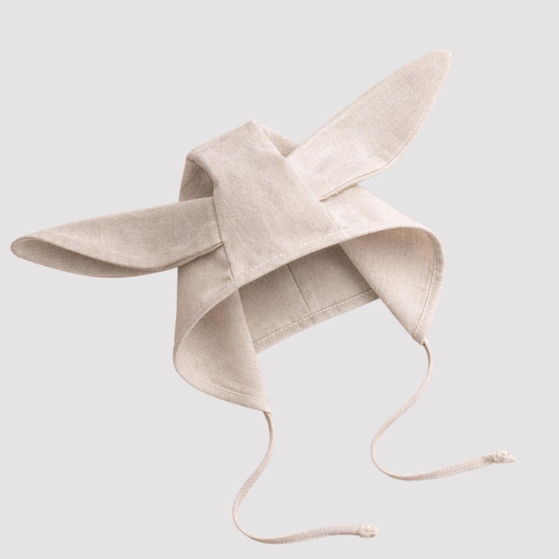 Touca de Bebê Orelha Coelho Linho Cru